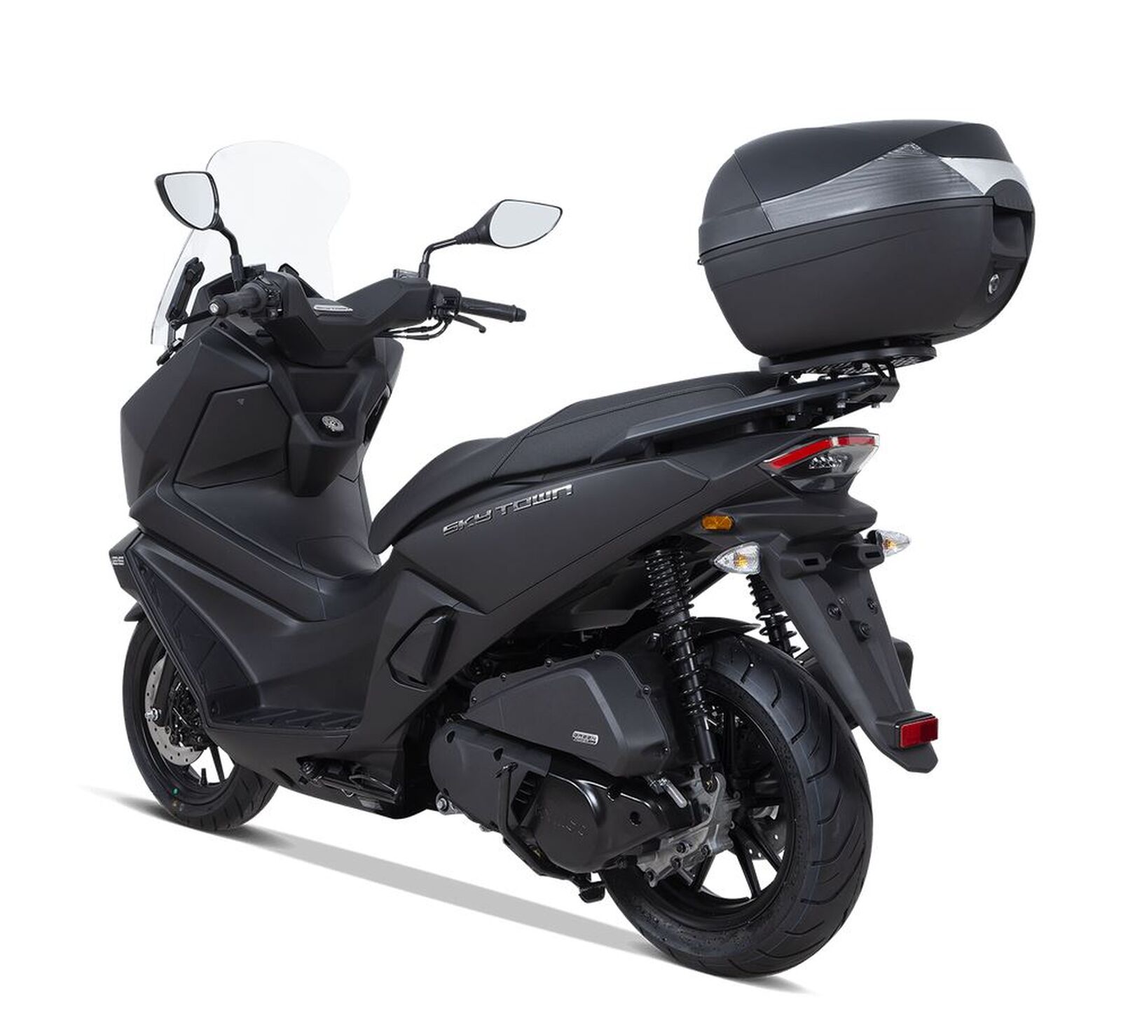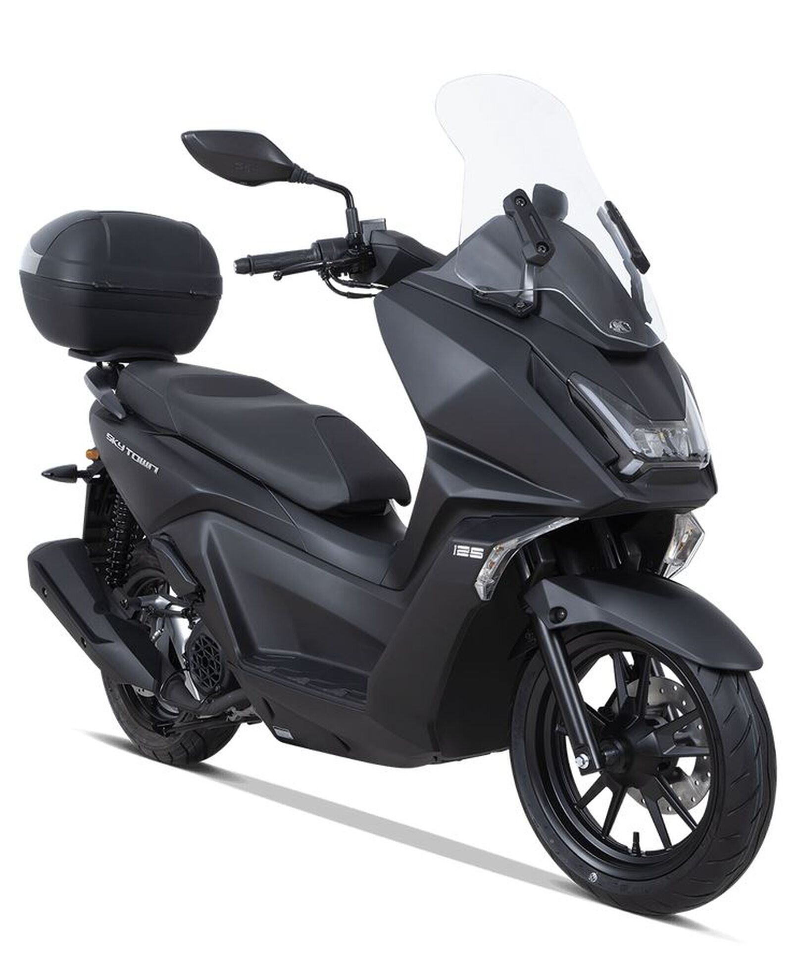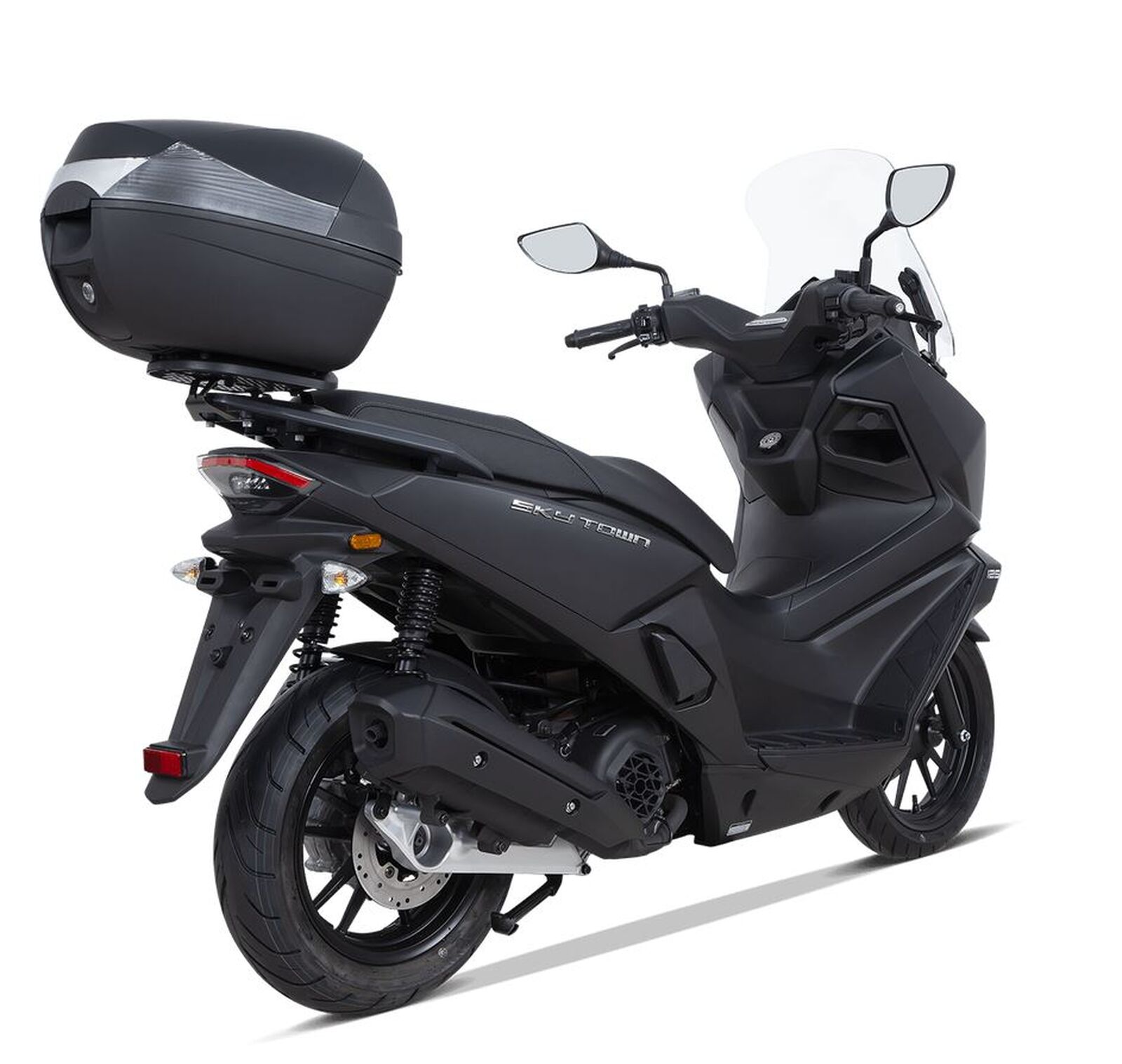 Der Sky Town 125i ABS hat ein leichtes Chassis mit stabiler Aluminiumstruktur und wurde speziell für die Anforderungen des Stadtverkehrs entwickelt. Der kurze Radstand und die leichte Bauweise (126 kg) machen den Roller besonders wendig – ideal für enge Gassen und belebte Straßen. Trotz seiner kompakten Größe bietet der Roller ausreichend Stauraum, um einen Integralhelm sowie persönliche Gegenstände sicher und bequem unterzubringen, das serienmäßige Topcase bietet zusätzlichen Platz.