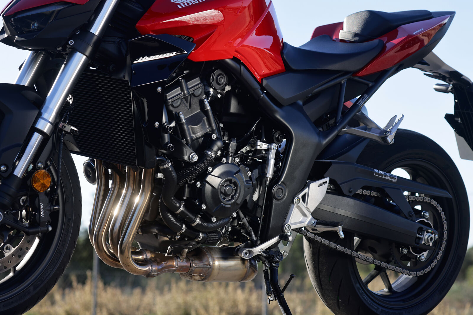 Die CB 1000 Hornet ist mit einem liquid-cooled 4-Zylinder-Motor ausgestattet, der auf dem alten Fireblade-Motor von 2017 basiert. Mit 152 PS bei 11.000 Umdrehungen und einem Drehmoment von 104 Nm bei 9.000 Umdrehungen verspricht der Motor eine beeindruckende Leistung. Besonders bemerkenswert ist die Leistung bei höheren Drehzahlen: Ab 6.000 Umdrehungen geht es richtig zur Sache und der Spaßfaktor steigt. Im unteren Drehzahlbereich ist die Hornet sehr gutmütig und eignet sich perfekt für entspannte Stadtfahrten. Doch ab 8.000 Umdrehungen wird es aufregend, und du wirst das volle Potenzial der Maschine spüren. Die Beschleunigung von 50 auf 120 km/h gelingt in nur 3,058 Sekunden – ein beeindruckender Wert für ein Naked Bike.