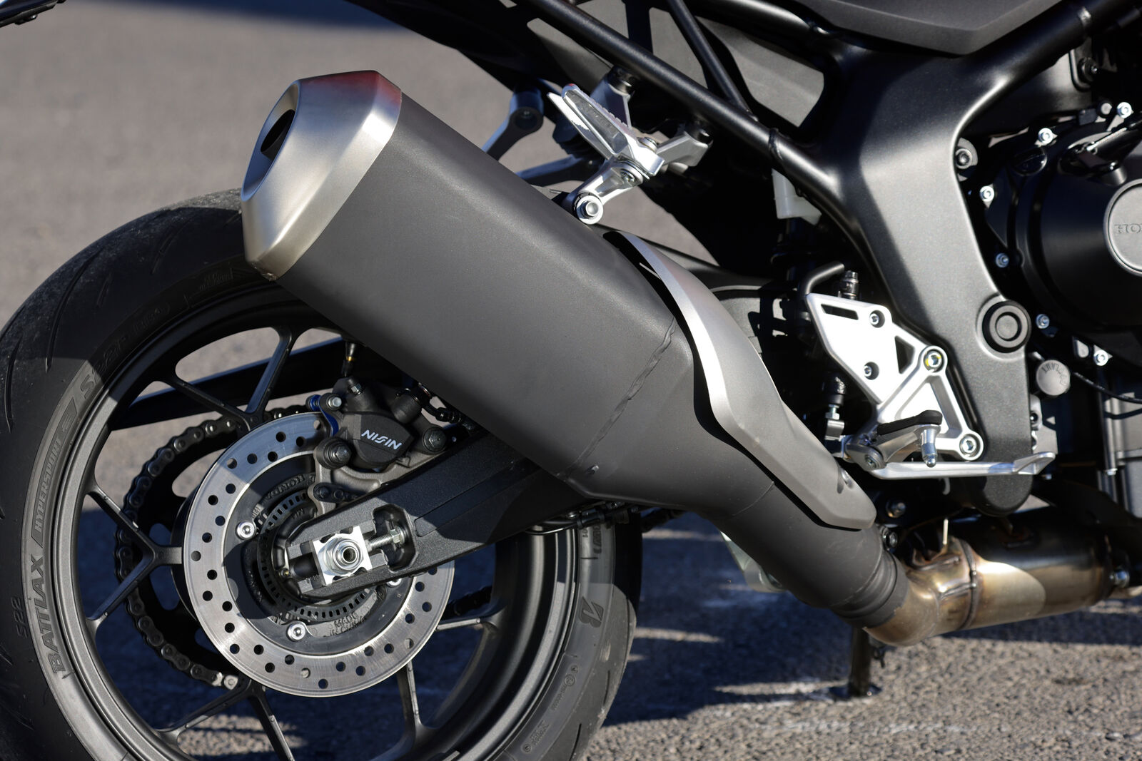 Das Fahrwerk der CB 1000 Hornet ist mit einer 41 mm Upside-Down-Gabel und einem voll einstellbaren Monoshock ausgestattet, was für ein ausgewogenes Fahrverhalten sorgt. Die Federung ist angenehm, könnte aber für aggressivere Fahrer etwas straffer eingestellt werden. Die Sitzposition ist auf langen Touren bequem, auch wenn der Original-Sitz etwas hart ist. Bei einer Sitzhöhe von 809 mm ist die Hornet für Fahrer unterschiedlicher Körpergrößen gut geeignet. Für zusätzlichen Komfort könnte man über einen gepolsterten Sitz nachdenken, aber die Grundposition ist schon recht angenehm. Die Handhabung ist dank des breiten Tanks und der durchdachten Ergonomie stabil und kontrolliert, was besonders in Kurven von Vorteil ist.