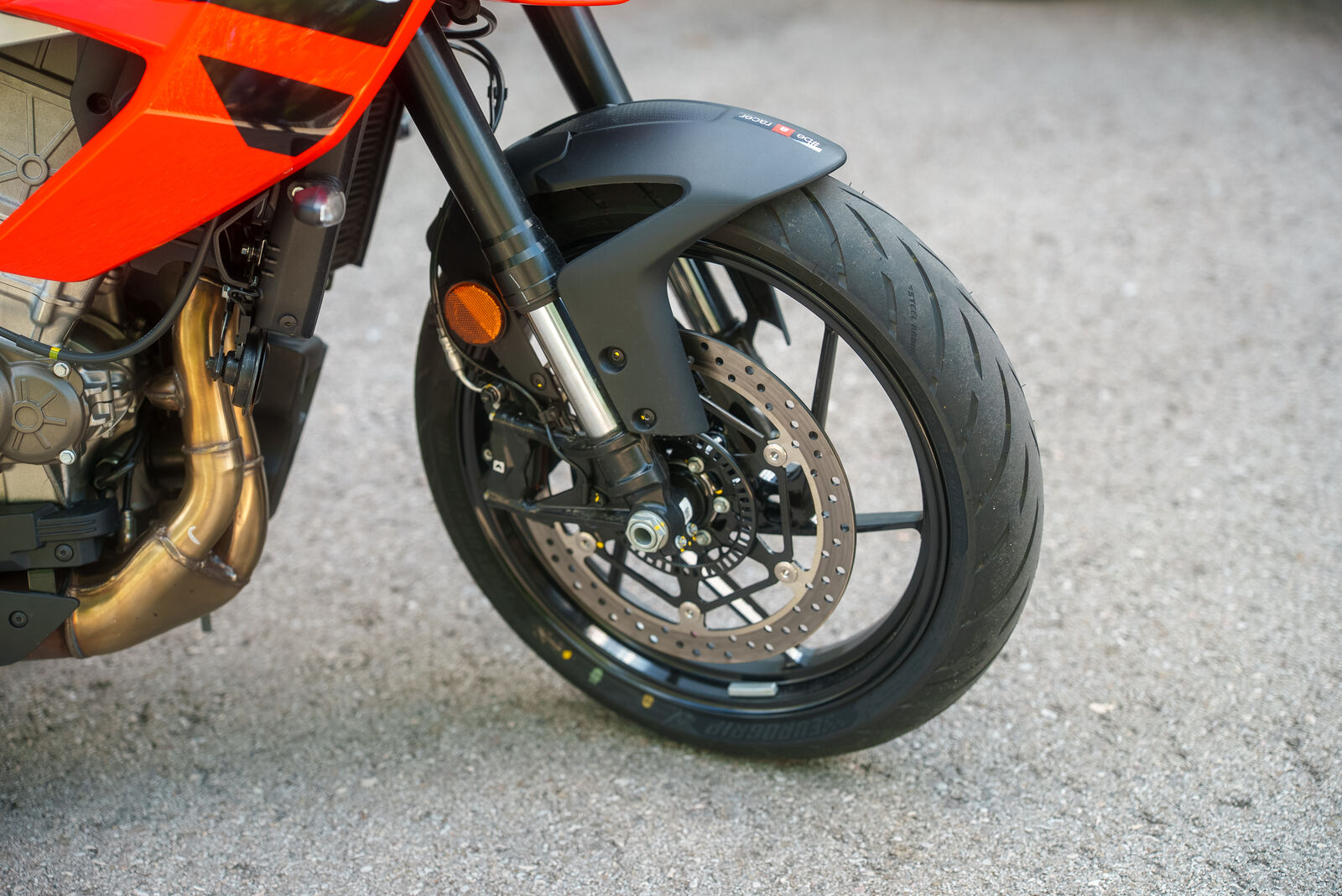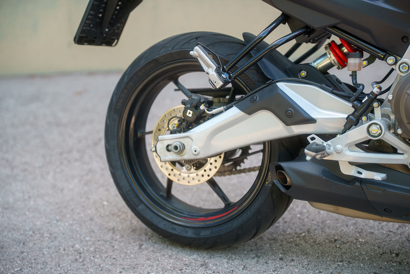 Die Aprilia Tuono 457 überzeugt nicht nur durch ihre Leistung, sondern auch durch ihr Fahrverhalten. Die 41 mm Upside-Down-Gabel und das einstellbare Monoshock-Federbein bieten eine optimale Fahrwerksabstimmung, die sowohl auf kurvigen Straßen als auch im Stadtverkehr für viel Freude sorgt. Die Agilität und Wendigkeit der Tuono sind bemerkenswert, und du wirst schnell feststellen, dass dieses Motorrad dazu einlädt, sportlich gefahren zu werden. Die Sitzhöhe von 800 mm macht es für viele Fahrer zugänglich, jedoch könnte es für größere Fahrer etwas eng werden. Die Sitzposition ist leicht nach vorne geneigt, was eine sportliche Haltung fördert und dir ein gutes Gefühl für die Straße gibt. Die Bremsanlage, ausgestattet mit Brembo-Bremssätteln und einem durchdachten Design, könnte für sportlichere Fahrten etwas mehr Biss vertragen, erfüllt jedoch ihren Zweck für Neulinge und Wiedereinsteiger gleichermaßen.