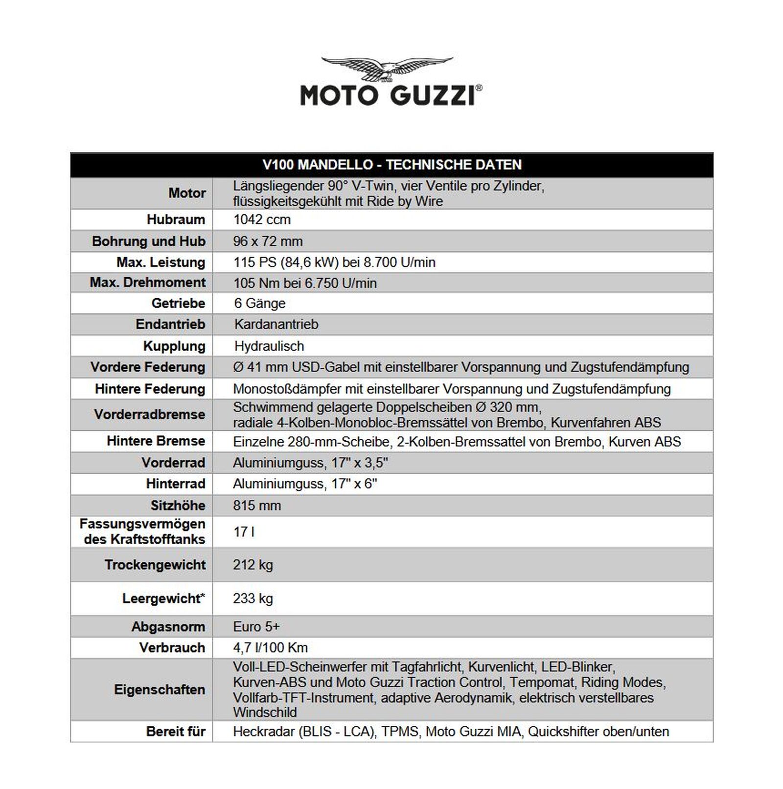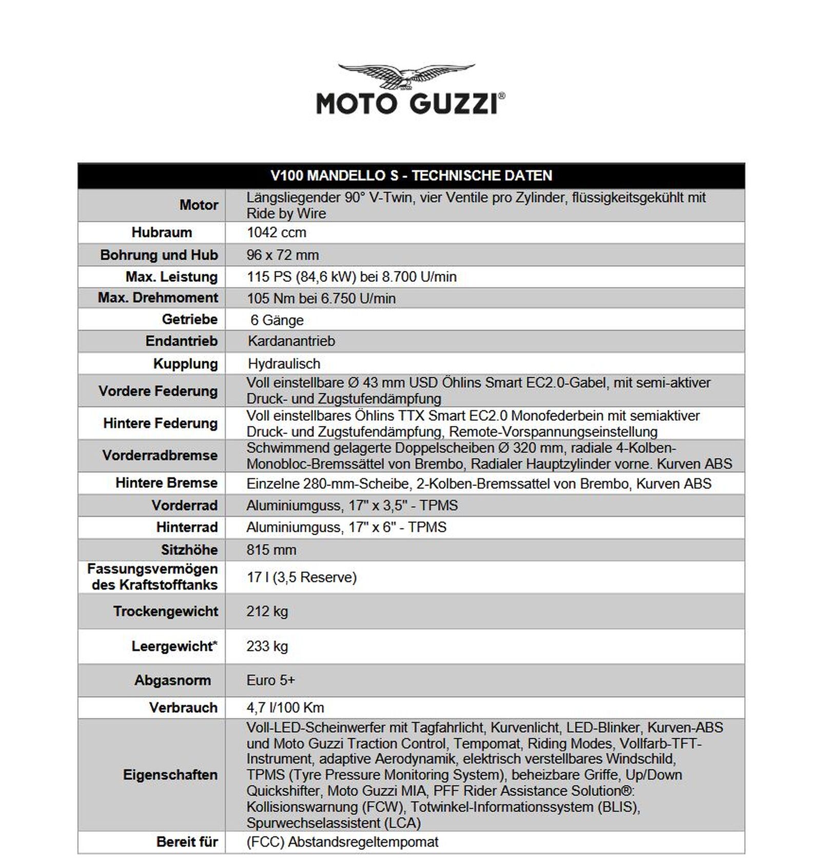 -- Moto Guzzi V100 Mandello S: € 19.599,-