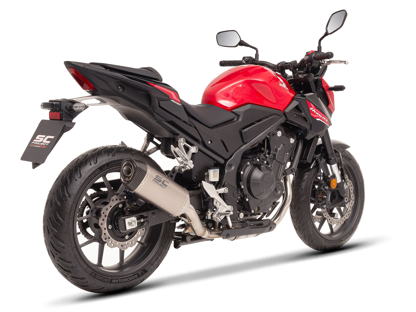 Braucht man mehr als 500 Kubik zum motomobilen Glücklichsein? Honda meint Nein – und tritt den Beweis mit drei ebenso erfolgreichen wie A2-tauglichen Maschinen an: der nackten CB500 Hornet, dem Crossover-Bike NX500 und der sportlichen CBR500R. Und wenn sich SC-Project des Themas annimmt, werden Design, Leistungsentwicklung und Sound noch stärker. Für alle drei Maschinen bieten die Auspuffprofis aus Cassinetta di Lugagnano jetzt die passenden Slip-on-Endschalldämpfer an. Sie heißen SC1-S und Oval, werden zu 100 Prozent in Italien entworfen und gefertigt, sind simpel anzubringen und erfordern kein Remapping der Motorsteuerung. SC-Project verspricht nicht nur starken, italienischen Look und hinreißenden Sound, sondern auch Topqualität, wie sie nur aus Italien kommen kann: erstklassige Materialien in aufwendiger Verarbeitung.