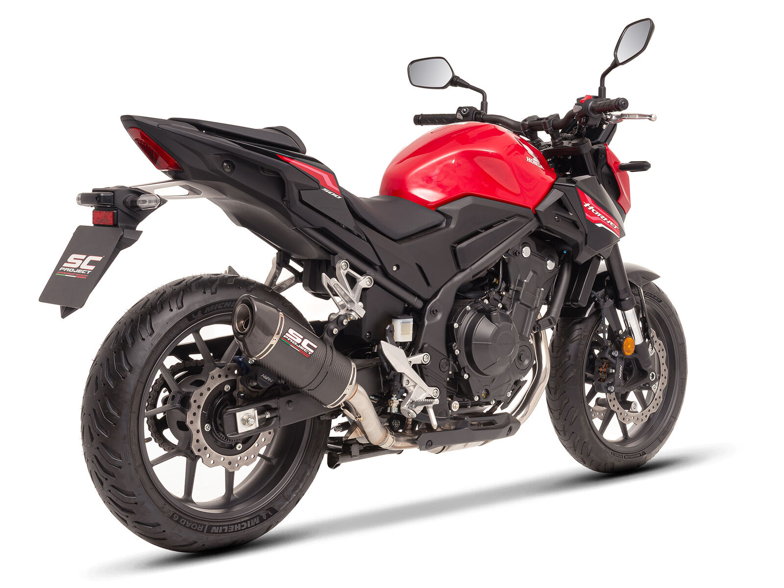 SC-Project präsentiert neue Slip-on-Schalldämpfer für Hondas 500er-Modelle CB500 Hornet, NX500 und CBR500R, die Design, Leistung und Klang optimieren. Die in Italien gefertigten Modelle SC1-S (aus Titan oder Kohlefaser mit asymmetrischer Endkappe) und Oval (komplett aus Kohlefaser) überzeugen mit hochwertiger Verarbeitung, einfachem Einbau ohne ECU-Remapping und Euro-5+-Konformität. Der SC1-S bringt 0,9 PS und 1 Nm mehr Leistung bei rund 40 % weniger Gewicht, der Oval liefert 1 PS und 1,1 Nm bei halbem Gewicht des Serienbauteils. Beide Varianten sind auch mit Hauptständer kompatibel. Preise: SC1-S ab 490 € (660 CHF), Oval ab 450 € (610 CHF).