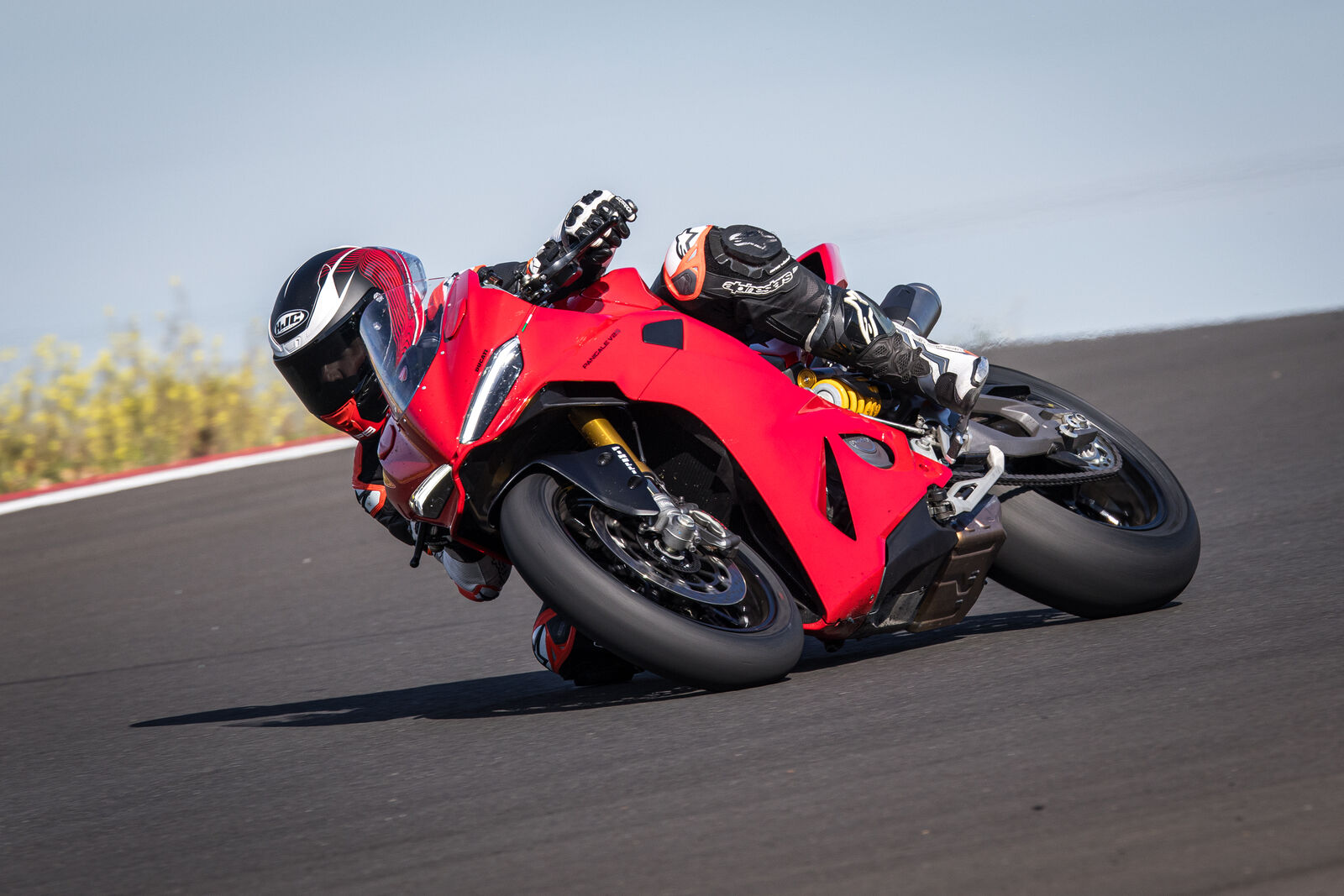 Das Fahrwerk: absolute Sahne. Serienmäßig kommt die Panigale V2 mit Öhlins NiX Gabel und TTX-Federbein – voll einstellbar. Es bügelt Unebenheiten glatt, gibt Sicherheit, bleibt aber sportlich-straff. Auch die Sitzposition: sportlich, mit leicht nach unten gekröpftem Stummellenker – nicht extrem unbequem, aber auch nicht tourentauglich. Für große Fahrer passt das Windschild überraschend gut, die Ergonomie ist insgesamt ausgewogen. Elektronik? Volles Paket: Kurven-ABS, Traktionskontrolle, Anti-Wheelie, Engine Braking – alles feinfühlig, einstellbar, sogar per App (gegen Aufpreis). Die Bremsanlage (Brembo M50, 2x320mm vorne) ist bissig, aber gut dosierbar. Preislich liegt sie im oberen Segment: ab ca. 19.795 €, mit Öhlins rund 22.495 €. Fazit: Die Panigale V2 ist ein Supersportler mit Landstraßen-DNA. Nicht die leistungsstärkste, aber eine der fahrbarsten in ihrer Klasse. Leistung ist hier nicht Selbstzweck, sondern gezielt einsetzbar. Ein echtes Fahrer-Bike – nicht nur für Helden auf der Rennstrecke, sondern endlich auch für die Landstraße gemacht.