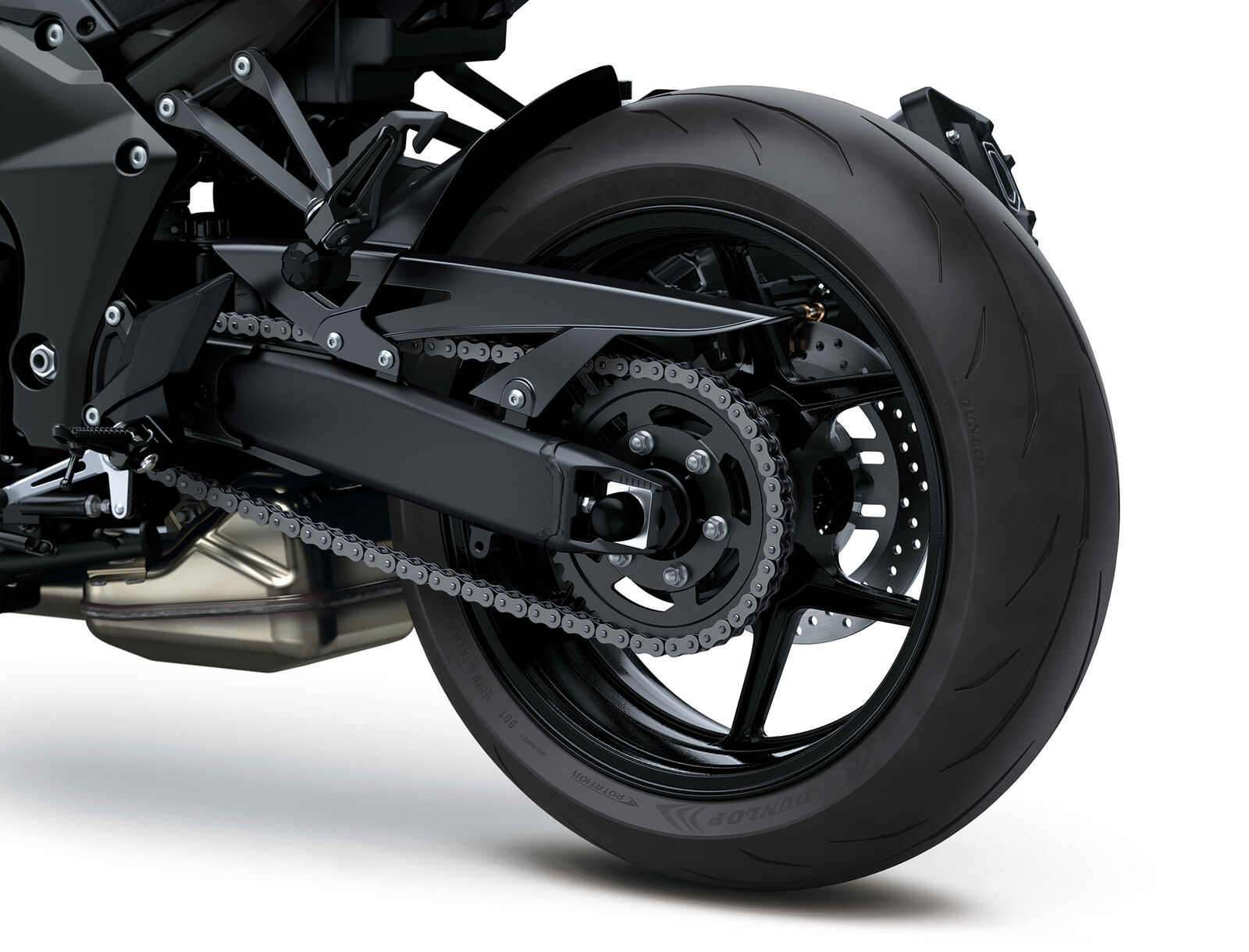 Bei der Fahrwerksausstattung gibt es zwei Versionen: die Standardvariante mit Showa Big Piston Gabel und horizontalem Backlink-Federbein sowie die SE-Version mit höherwertigem Öhlins S46 Federbein inklusive Preload-Rad. Die SE-Version erlaubt eine präzisere Anpassung an Gepäck oder Soziusbetrieb. Das Setup ist klar auf Landstraßenoptimierung ausgelegt – mehr Druck beim Rausbeschleunigen, weniger Top-End-Leistung, dafür spürbar mehr Nutzwert im Alltag. In puncto Elektronik zieht die neue Z voll mit: 5-Zoll-TFT mit Navigation, Smartphone-Konnektivität, Sprachsteuerung und RIDEOLOGY-App. Fahrmodi wie Sport, Rain, Road und Rider (individuell anpassbar) sind ebenfalls integriert. Eine 6-Achsen-IMU sorgt für schräglagenabhängige Assistenzsysteme – von Traktionskontrolle bis ABS. Quickshifter mit Blipper-Funktion ist serienmäßig dabei. Das macht die neue Z zu einem echten Technologieträger – und hebt sie von früheren Modellen der Plattform deutlich ab.