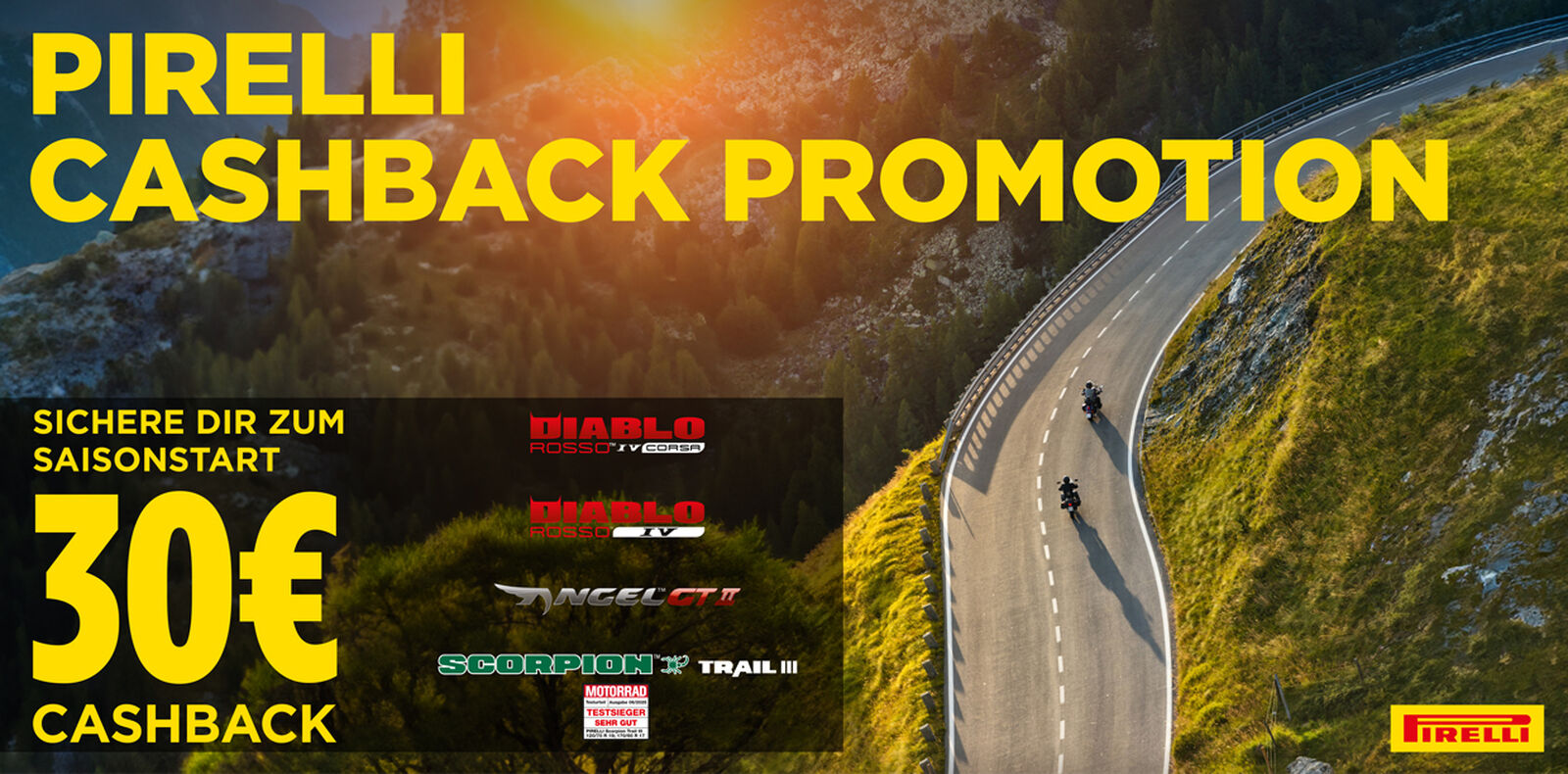 Pirelli läutet die Motorradsaison 2026 ein und versüßt den Start mit einer Cashback-Aktion: Wer zwischen dem 2. März und 31. Mai 2026 einen Satz ausgewählter Reifen kauft, erhält 30 Euro zurück. Die Aktion umfasst die Reifenprofile DIABLO ROSSO™ IV Corsa, DIABLO ROSSO™ IV, ANGEL™ GT II und SCORPION™ Trail III und deckt damit sportlichen Straßeneinsatz, Sport-Touring und Reiseenduros ab. Die Teilnahme erfolgt online auf pirelli.de/moto - innerhalb von 14 Tagen nach dem Kauf einfach registrieren, Beleg hochladen, und nach Prüfung überweist Pirelli den Cashback direkt auf das Konto.