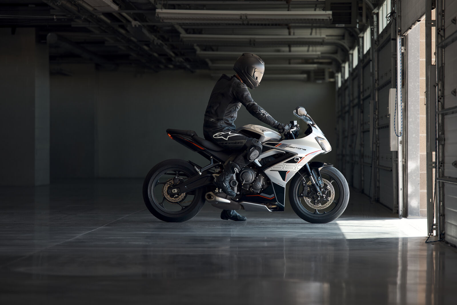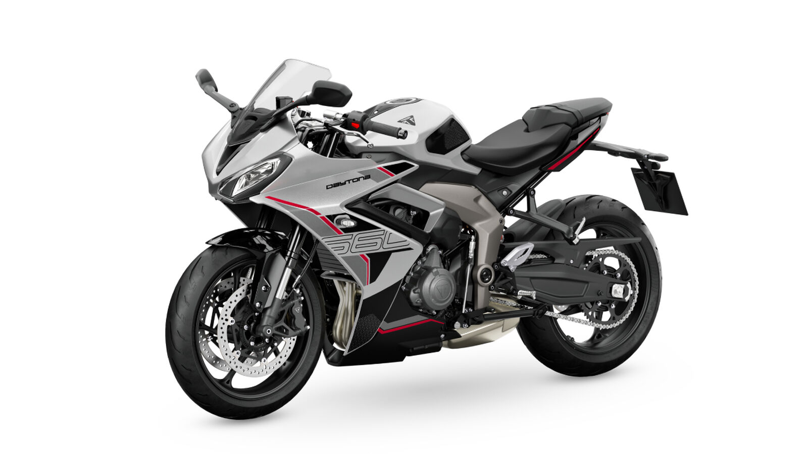Angetrieben vom 660-ccm-Dreizylindermotor liefert die Daytona 660 95 PS bei 11.250 U/min und 69 Nm bei 8.250 U/min. Mit 80 % des Drehmoments über weite Teile des Bands bietet sie starken, linearen Vortrieb. Ride-by-Wire sorgt für präzise Gasannahme, während die Anti-Hopping-Kupplung und der serienmäßige Schaltassistent sanfte Gangwechsel ohne Kupplungsarbeit ermöglichen. Drei Fahrmodi – Sport, Road und Rain – passen Gasannahme und Traktionskontrolle an die jeweilige Situation an, unterstützt durch das TFT-Display mit My Triumph Connectivity für Navigation, Musik und Anrufintegration. Voll-LED-Beleuchtung inklusive Tagfahrlicht sorgt für Sichtbarkeit und eine moderne Straßenpräsenz.