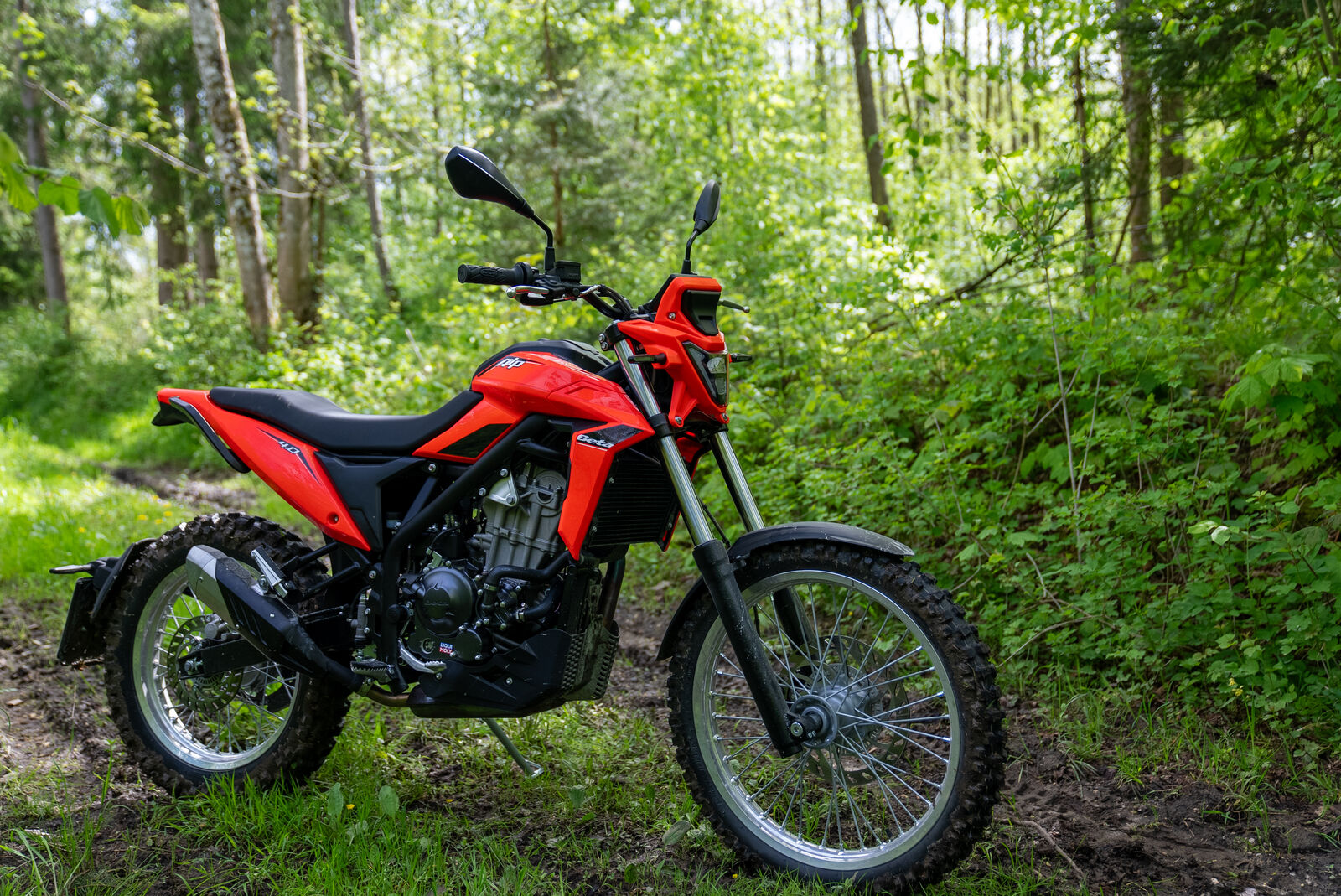 Natürlich darf man nicht erwarten, dass der kleine Motor ein Kraftprotz ist. Man sollte die Alp auch nicht mit einer Sportenduro verwechseln. Aber ab 4.000 Touren legt der Motor richtig los und man kommt überall rauf und runter. In der Originalausstattung sind Reifen von VR Rubber montiert. Die Dimension vorne mit 90/90 und hinten 140/80 ist ein Standardmaß für Enduros, sodass man aus einer Vielzahl von Reifen wählen kann. Für mich hat die Kombination mit einem Reifendruck vorne von 1,5 Bar und hinten 1,7 Bar sehr gut gepasst. Ich hatte sowohl auf Schotter den richtigen Grip und bin auch sehr gut durch die Kurven gekommen, ohne viel zu rutschen.