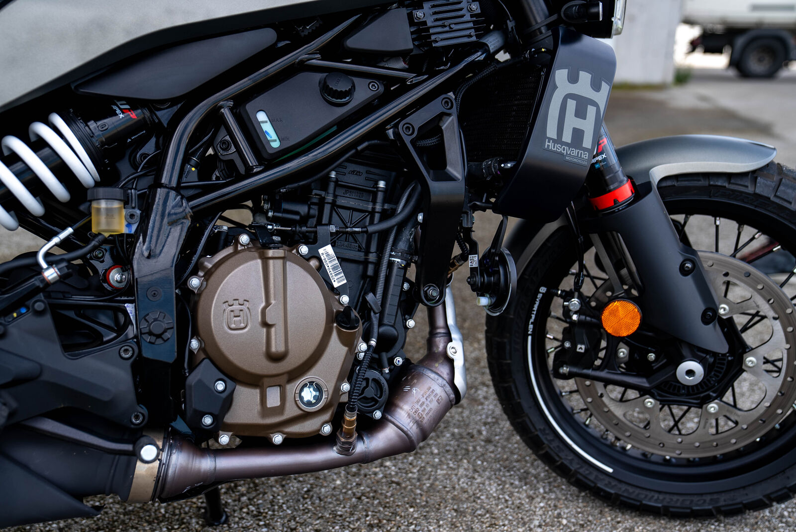 Ein weiteres Highlight der Svartpilen 125 ist das Fahrwerk. Hier sind die Jungs von Husqvarna wirklich keinen Kompromiss eingegangen. Das Fahrwerk stammt von WP und ist mit 150 mm Federweg vorne und hinten super neutral und spurstabil. Obwohl die Svartpilen mit leichten Stollenreifen ausgestattet ist, die normalerweise nicht für ihren Grip bekannt sind, bleibt das Motorrad in jeder Situation kontrollierbar. Die Abstimmung ist etwas weicher als bei der Duke 125, was die Svartpilen tourentauglicher macht.