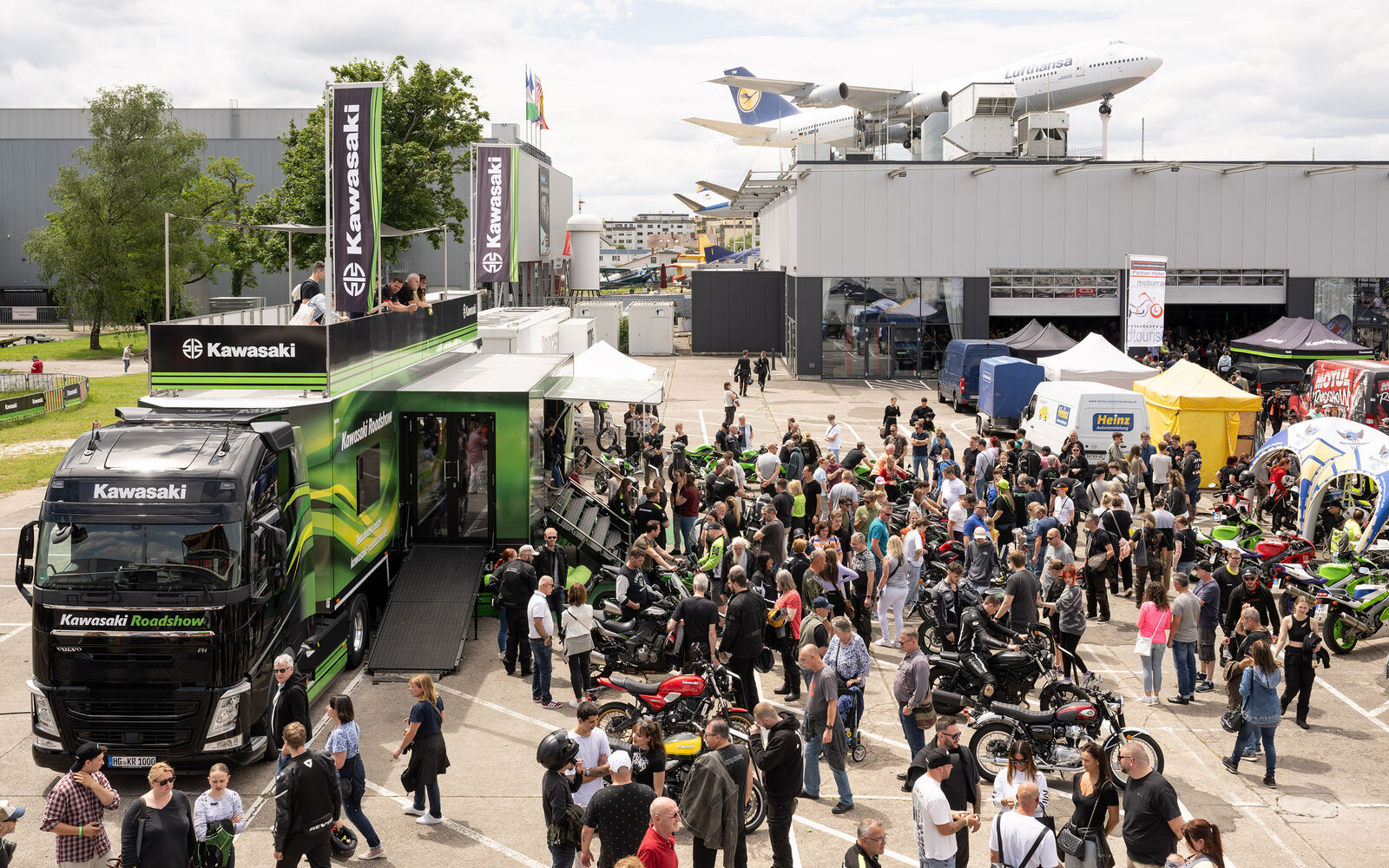 Draußen lieferte das Roadshow-Team von Kawasaki während des gesamten Events richtig ab. Die Testflotte war durchgehend verbucht, über 400 Testfahrten in die Umgebung von Speyer konnten absolviert werden.