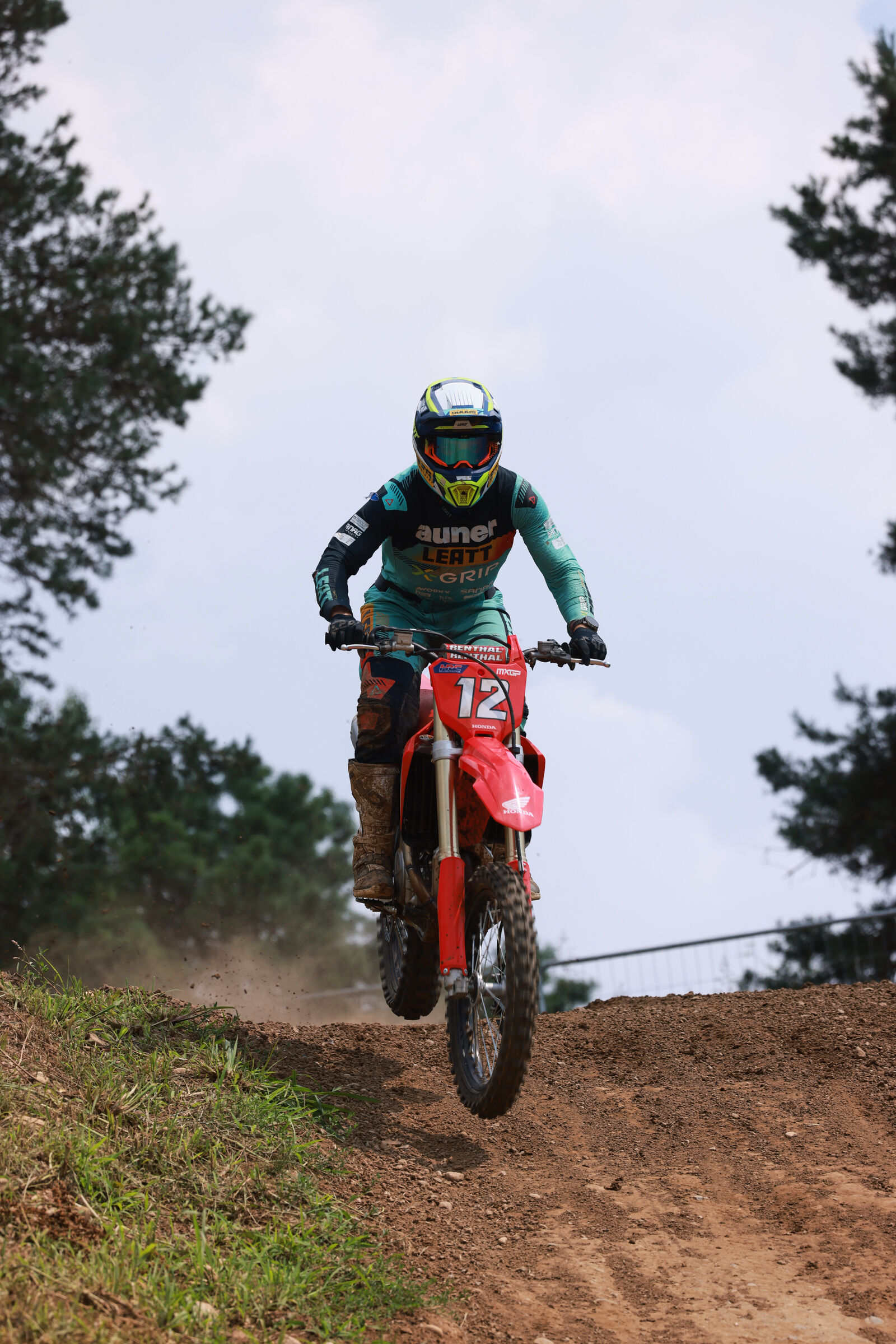 Der Aluminiumrahmen der neuen CRF 250 und 450 hat eine umfassende Überarbeitung erfahren. Ingenieure aus Japan haben sich intensiv mit der Verbesserung der Dämpfungs- und Montagepunkte beschäftigt, um das Handling der Bikes zu optimieren. Bei meiner Unterhaltung mit einem Ingenieur wurde mir erklärt, dass das Ziel war, ein besseres Kurvenverhalten zu erreichen. Und ich kann bestätigen, dass die Hondas in den Kurven absolut stabil sind, ohne das gefürchtete Kippverhalten, das bei vielen anderen Bikes vorkommen kann. Das sagt sogar MXGP-Fahrer Valentin Goulon, der die Bikes direkt mit dem 24er Modell verglichen hat.