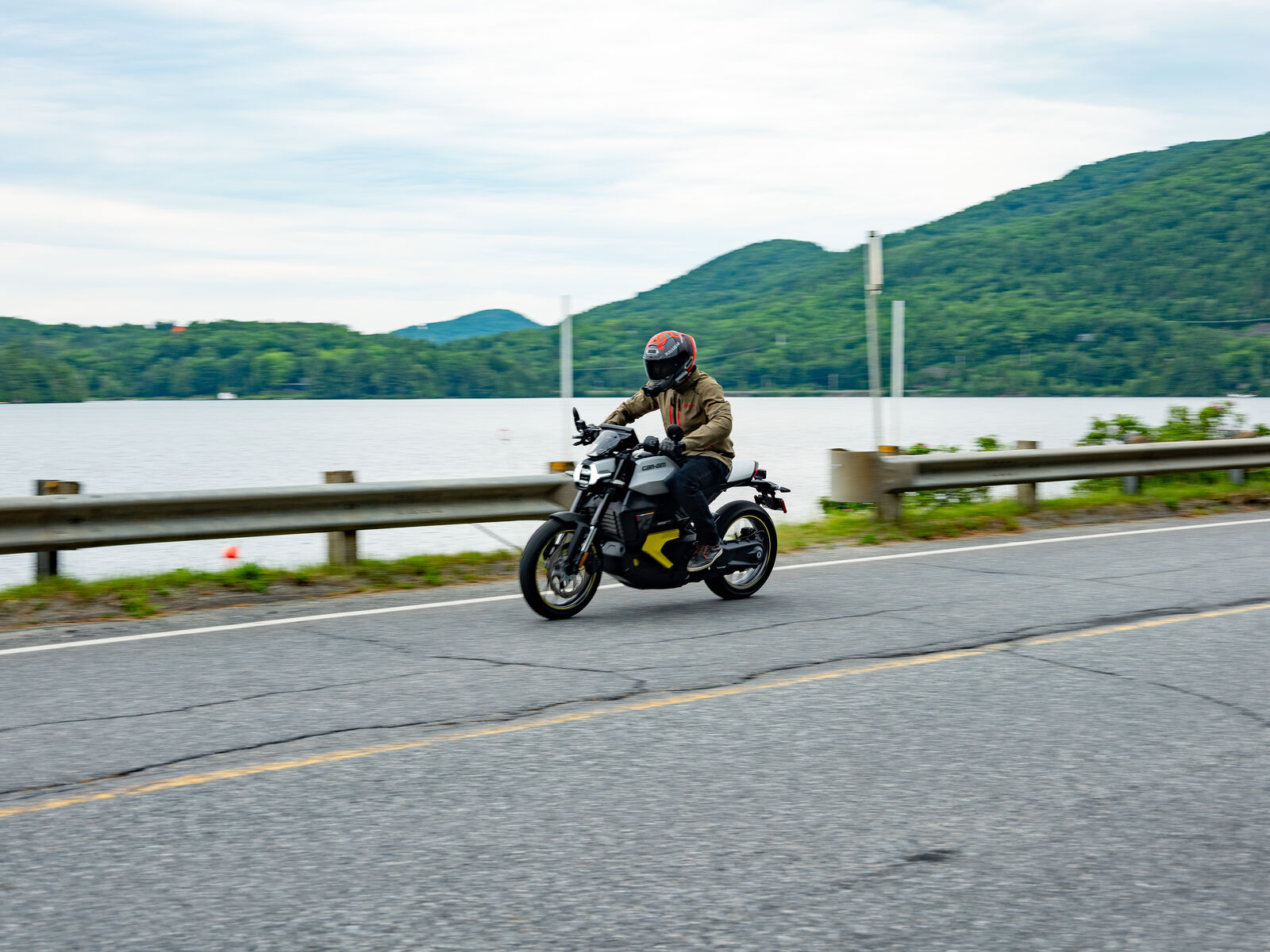 Bei meiner ersten Fahrt mit der Can-Am Pulse war ich positiv überrascht. Die Stadtflitzer-Qualitäten dieser Maschine zeigen sich besonders in ihrem agilen Handling und der Möglichkeit, zwischen verschiedenen Fahrmodi zu wechseln. Im Sport Plus-Modus kann ich mit Leichtigkeit Geschwindigkeiten von bis zu 129 km/h erreichen, was für urbane Verhältnisse mehr als ausreichend ist. Auch die Rekuperation, die ich aktiv steuern kann, hat mir Spaß gemacht. Die Möglichkeit, die Geschwindigkeit durch Rekuperation zu regulieren, gibt dem Fahrer ein ganz neues Gefühl von Kontrolle. Allerdings habe ich festgestellt, dass das Fahrwerk in schnelleren Kurven etwas nervös reagieren kann, was für weniger erfahrene Fahrer eine Herausforderung darstellen könnte.