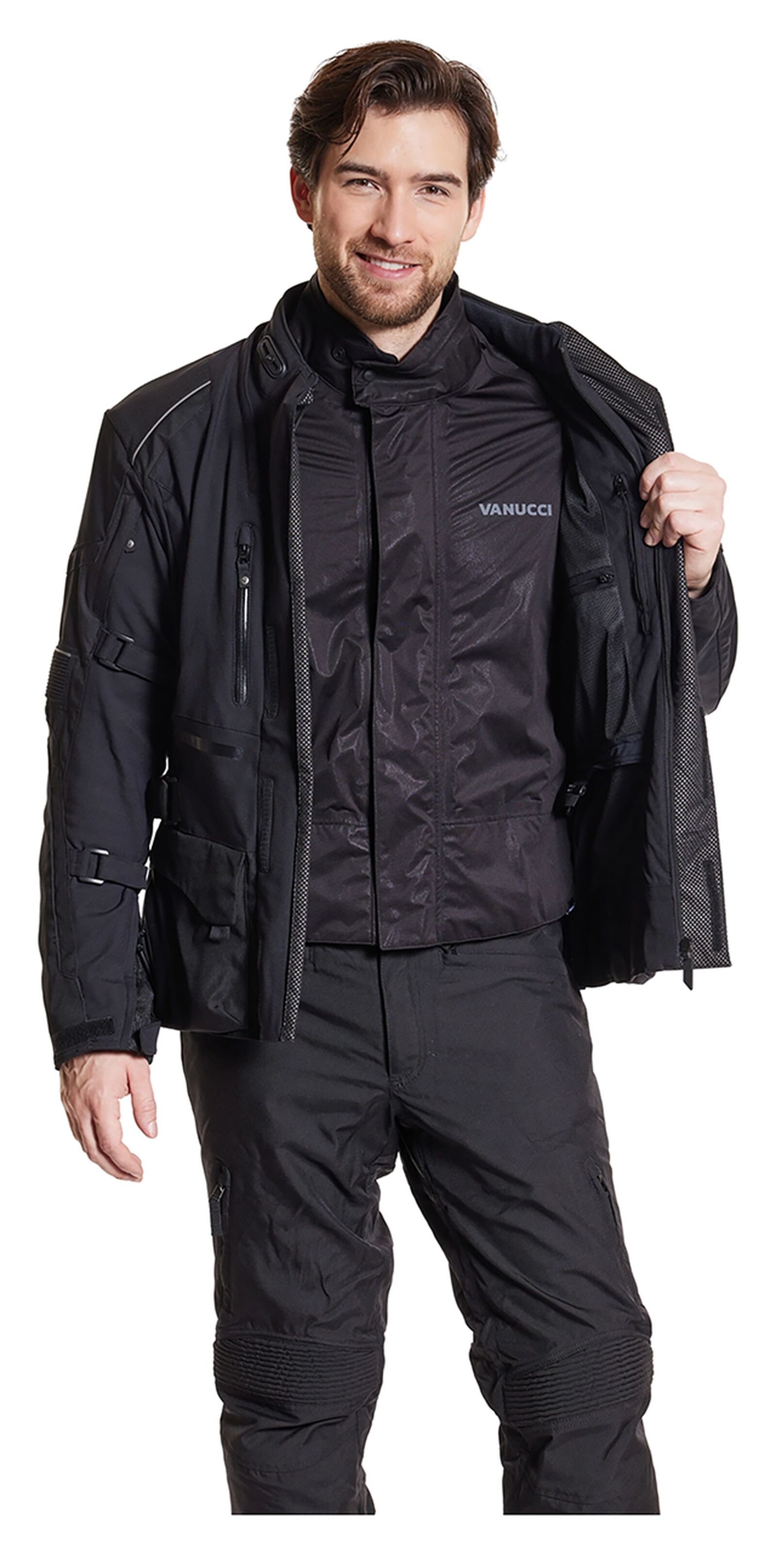 Die neue Vanucci VAJ-4 Textiljacke beeindruckt durch ihr sportliches Design und ihre hochwertige Verarbeitung, die den hohen Anspruch von Vanucci an erstklassige Biker-Ausrüstung unterstreicht.