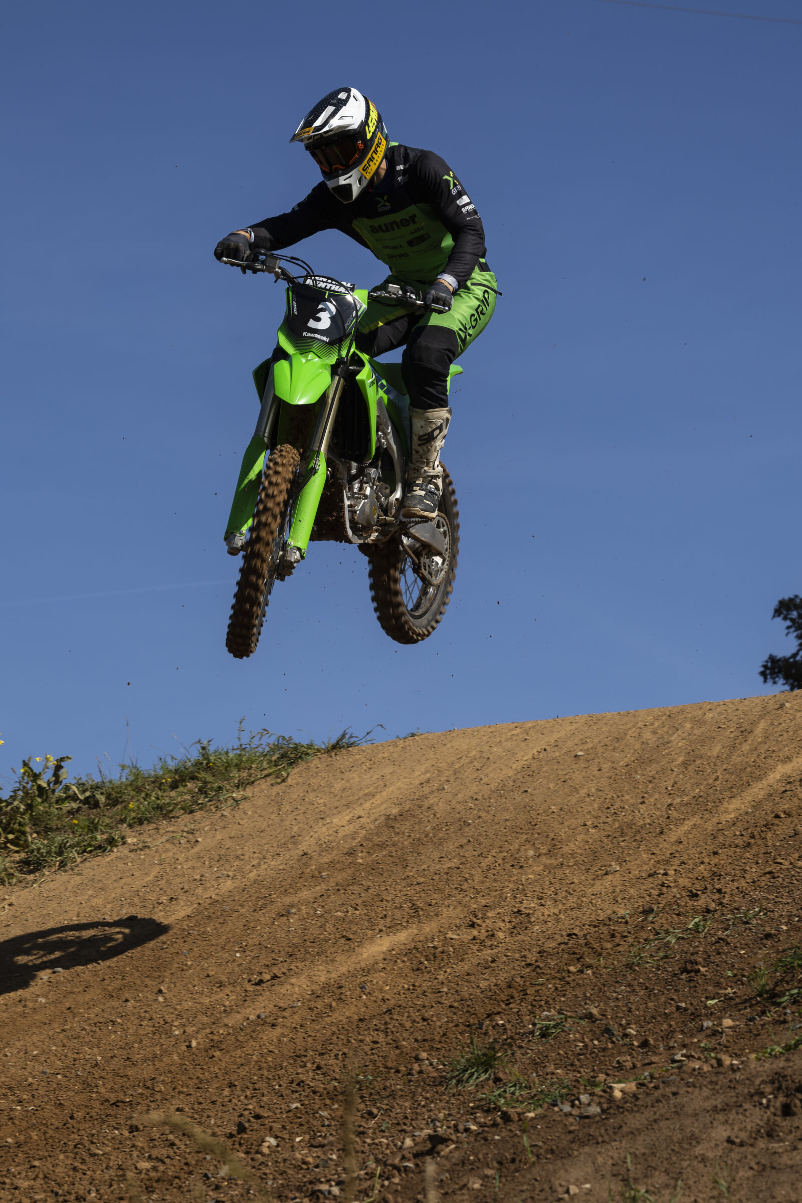 Das Fahrverhalten der KX250F ist einfach beeindruckend. Mit vier Sessions auf einer trockenen Hartstrecke konnte ich die Kraft des Motors und die Stabilität des Rahmens ausgiebig testen. Die Gabel lässt sich leicht anpassen, was dir ermöglicht, den Schwerpunkt nach deinen Vorlieben zu justieren. Ein kleiner Tipp: Wenn du den Gabeldurchschritt um ein paar Millimeter erhöhst, verbessert sich das Kurvenverhalten erheblich.