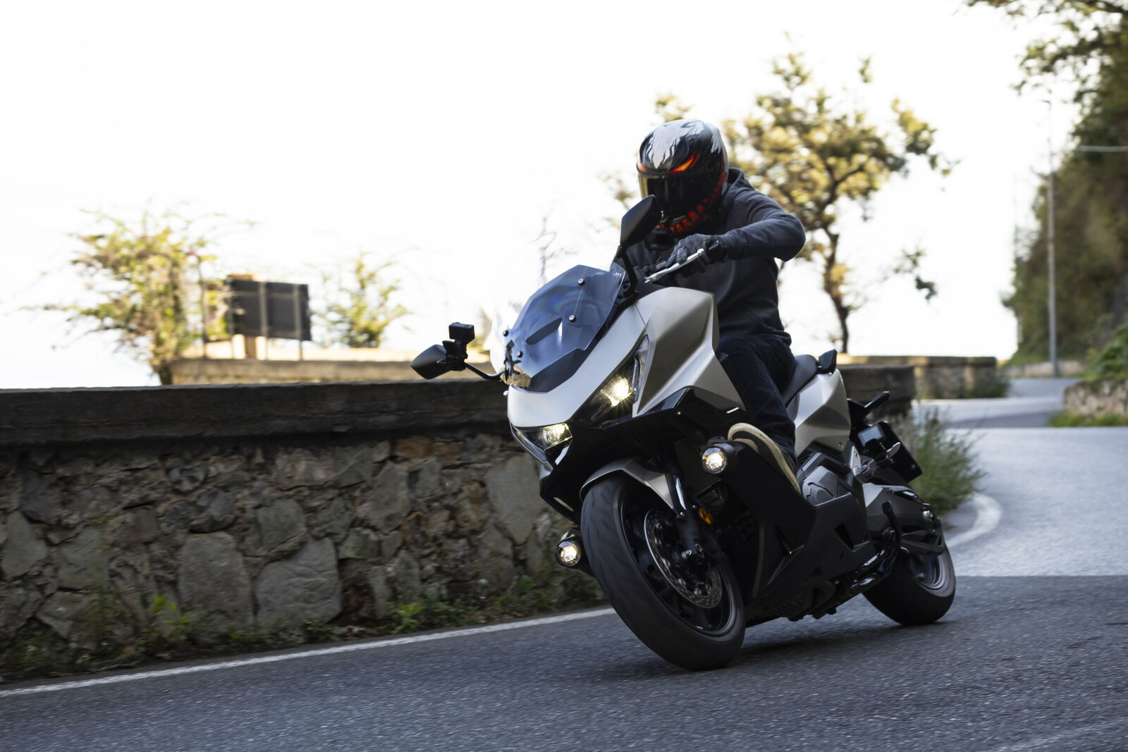 Das Fahrverhalten des Forza 750 ist beeindruckend. Trotz der Größe und des Gewichts liegt er stabil auf der Straße. Mit einem Gewicht von gerade einmal 23,6 kg für das Fahrwerk ist der Roller ein Leichtgewicht, das sich auch in engen Kurven gut fahren lässt. Ich erinnere mich an eine Fahrt auf der Autobahn, bei der ich mit 170 km/h über die Strecke flitzte und das Gefühl hatte, auf Schienen zu fahren. Das elektronische Windschild sorgt dafür, dass kein Wind ins Gesicht bläst – ein echter Komfortfaktor! Ein kleiner Wermutstropfen bleibt jedoch: Bergauf in engen Kurven kann der Forza 750 manchmal an seine Grenzen kommen. Ich habe einmal so derbe aufgesessen, dass ich dachte, ich wäre mit einem Sportbike unterwegs! Aber hey, das passiert nur, wenn man die Grenzen austestet. Für den alltäglichen Gebrauch und die meisten Fahrverhältnisse ist der Roller jedoch mehr als geeignet.