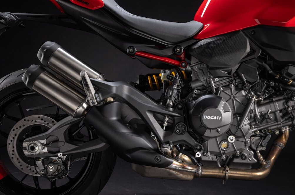 Der Motor der Ducati Monster 2026 ist ein flüssigkeitsgekühlter Zwei-Zylinder mit 90 Grad V-Anordnung, der ein maximales Drehmoment von 91 Nm bei 7.250 U/min erzeugt. Die elektronische Einspritzung mit Ride-by-Wire sorgt für eine präzise Leistungsentfaltung und Anpassung an die Fahrbedingungen, während die Euro 5 Abgasnorm für umweltfreundliche Fahrleistungen sorgt.