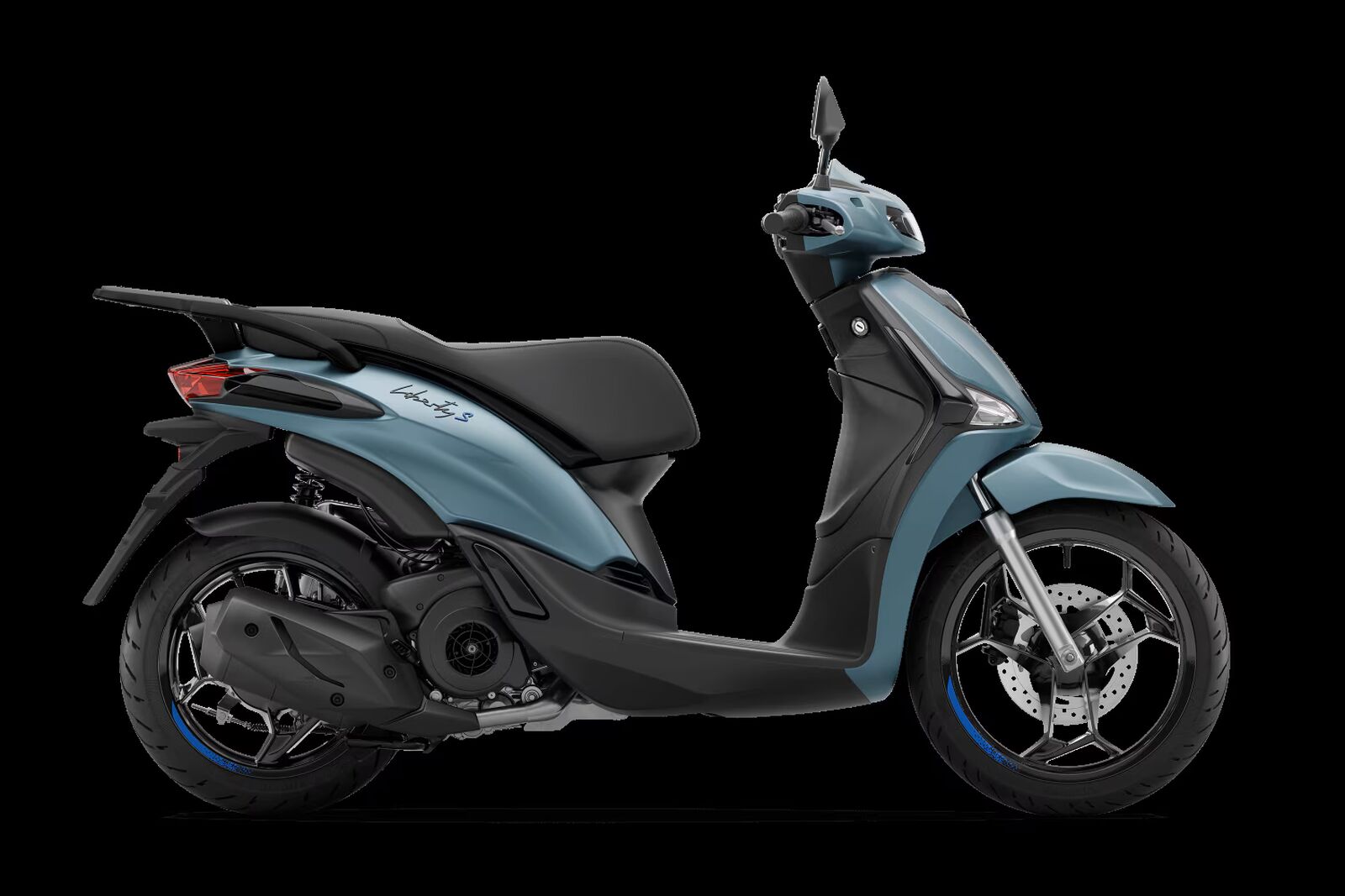 Der Piaggio Liberty S 125 wird von einem 124 ccm großen Einzylinder-Viertaktmotor angetrieben und verfügt über eine automatische Getriebeausstattung sowie eine trockene Fliehkraftkupplung. Die vordere Scheibenbremse mit 240 mm Durchmesser und ABS sorgt für Sicherheit, während das Fahrwerk aus hydraulischer Teleskop-Gabel vorne und einem Spiralfeder-Stoßdämpfer hinten für Stabilität und Komfort sorgt.